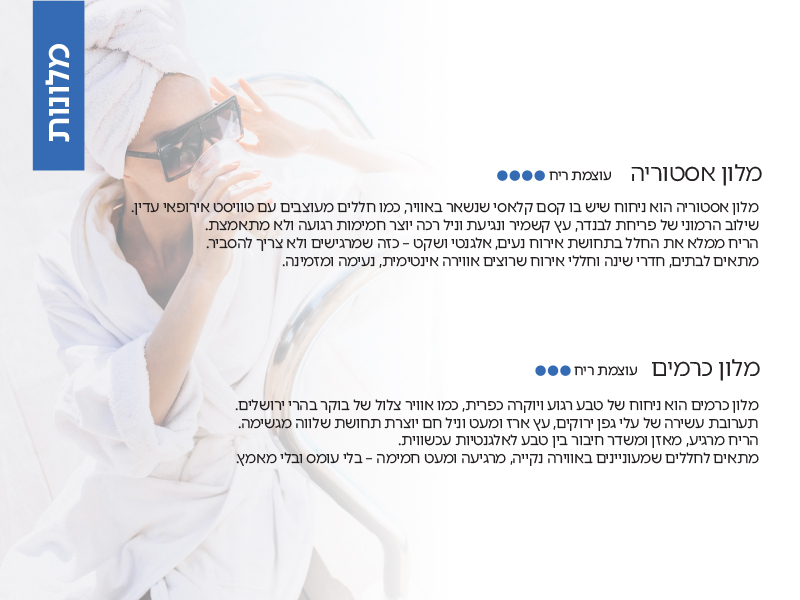 בקטלוג תמצאו מגוון ניחוחות פרימיום מובילים, לצד מבחר רחב של ריחות נוספים.